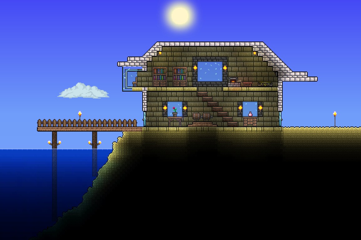 Terraria is so god dang beautiful and work like this is the main reason i even check. The house must include a light source, a flat surface item, and a comfort item. More images for terraria beach house » What makes a house a house in terraria? It consists of a sandy beach and a large body of water that extends toward the end of the map, with shell piles being occasionally generated in clumps.